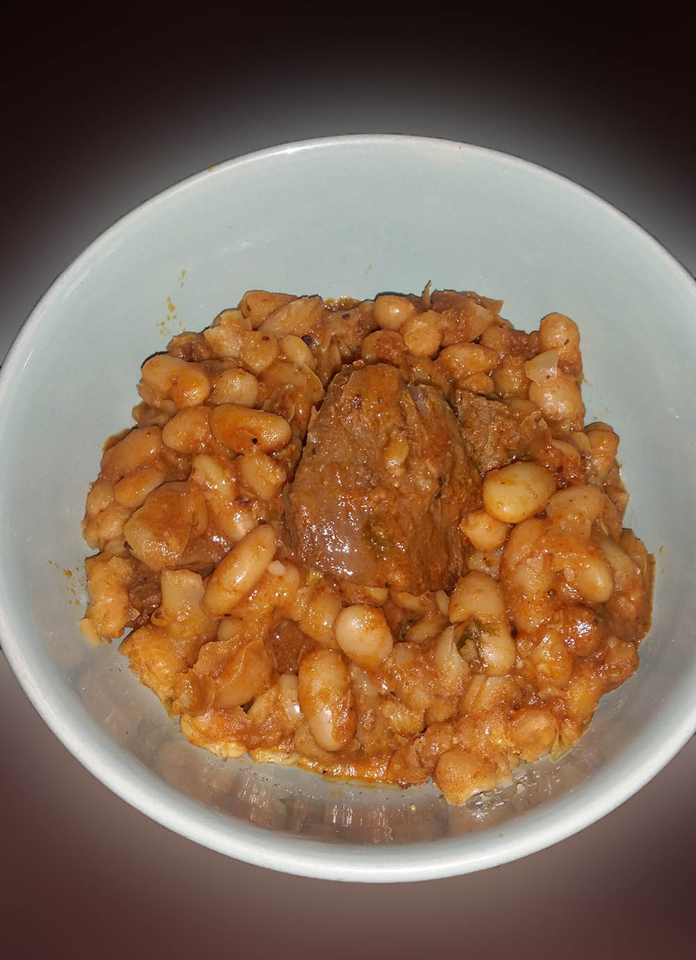 מוסיפים את השעועית הלבנה חצי מבושלת לתוך הבשר ומנמיכים את האש