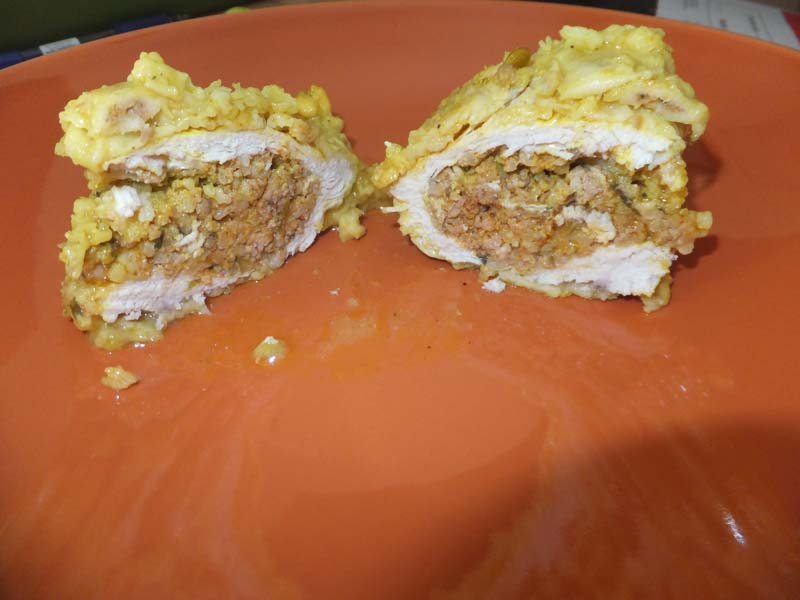 לוקחים את חזה העוף ועושים חתך כך שייווצר כיס בתוך החזה עוף